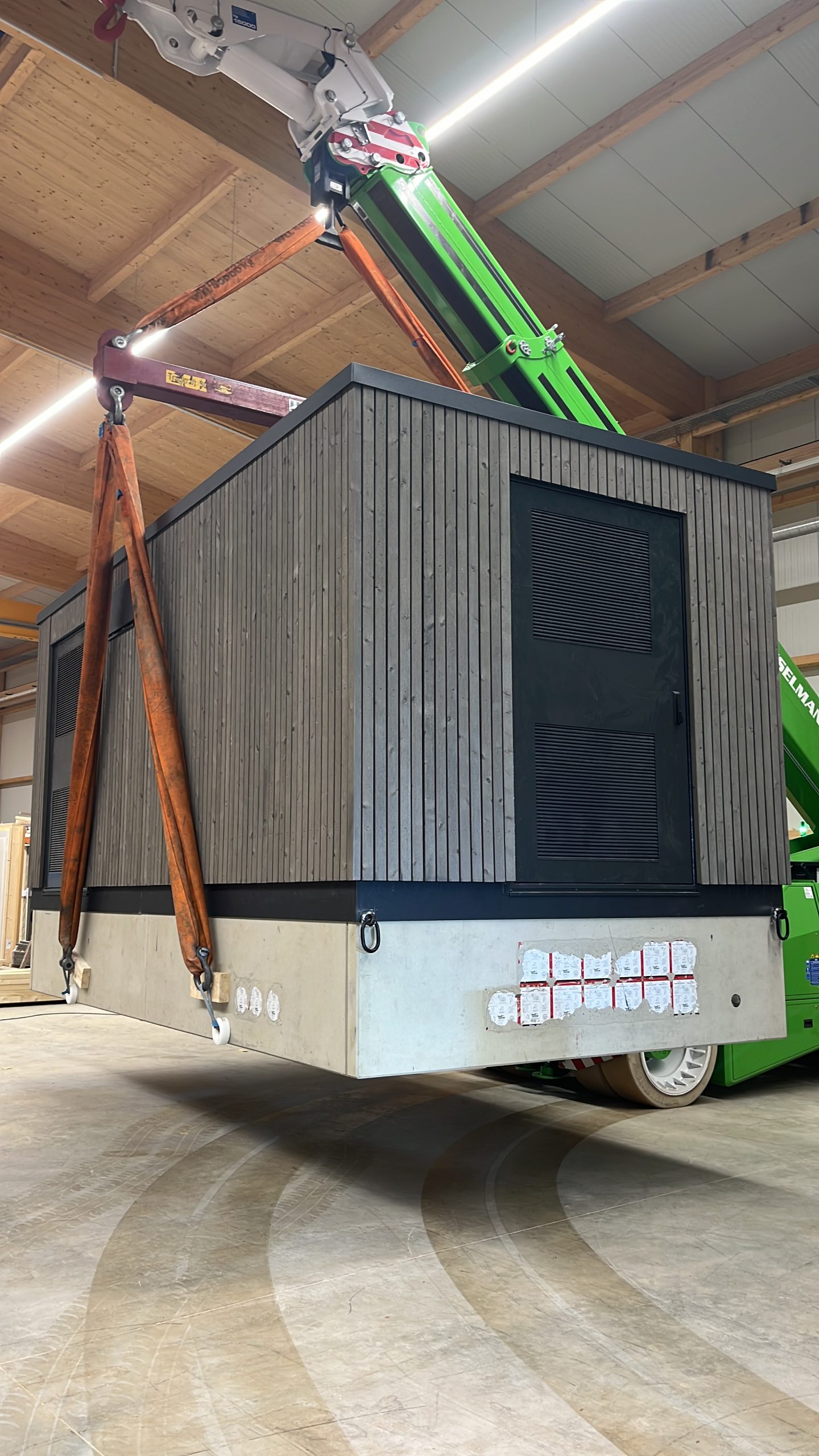 KAMBI-Station 3m x 6m mit Schaltraum und Traforaum bei der Verladung